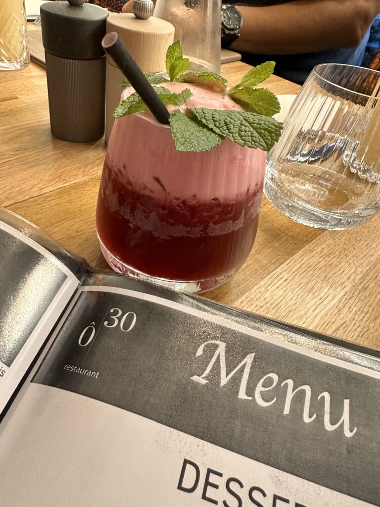 Le cocktail ou mocktail au Bissap (fleurs d’hibiscus), c’est une signature de la maison.