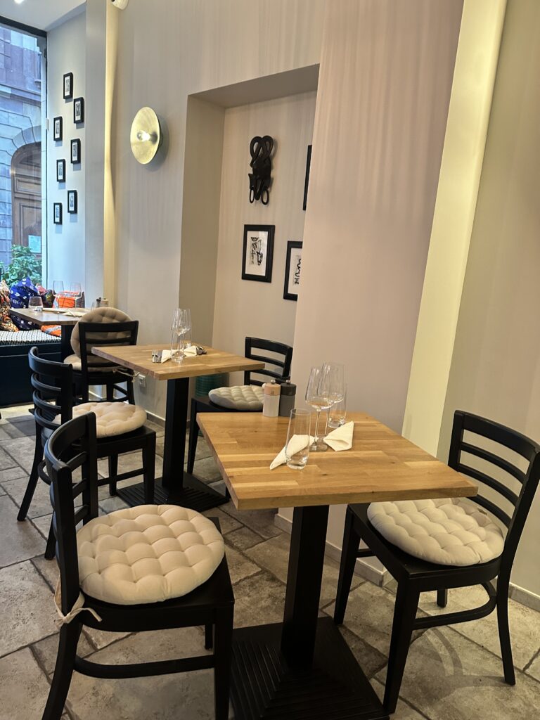 Que ce soit en salle pour profiter de l’ambiance décontractée ou sur la terrasse au calme de la rue des Juifs dès que la météo le permet, l’expérience est toujours la même : des cuissons maîtrisées, des portions généreuses et des saveurs originales. À chaque nouvelle carte, c’est une surprise. J’ai eu l’occasion d’y emmener des amis gourmets et le constat est unanime : on se régale à chaque fois.