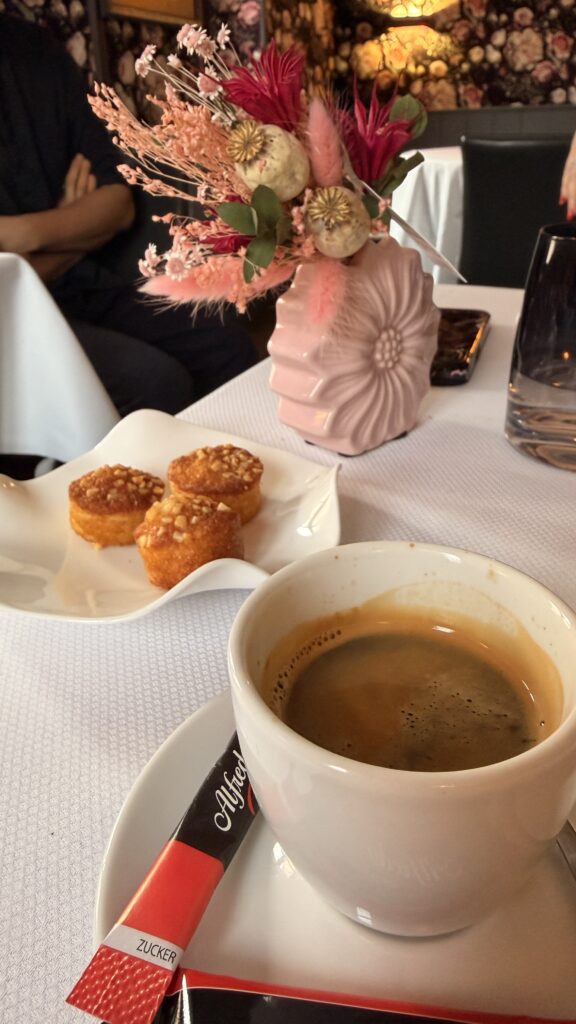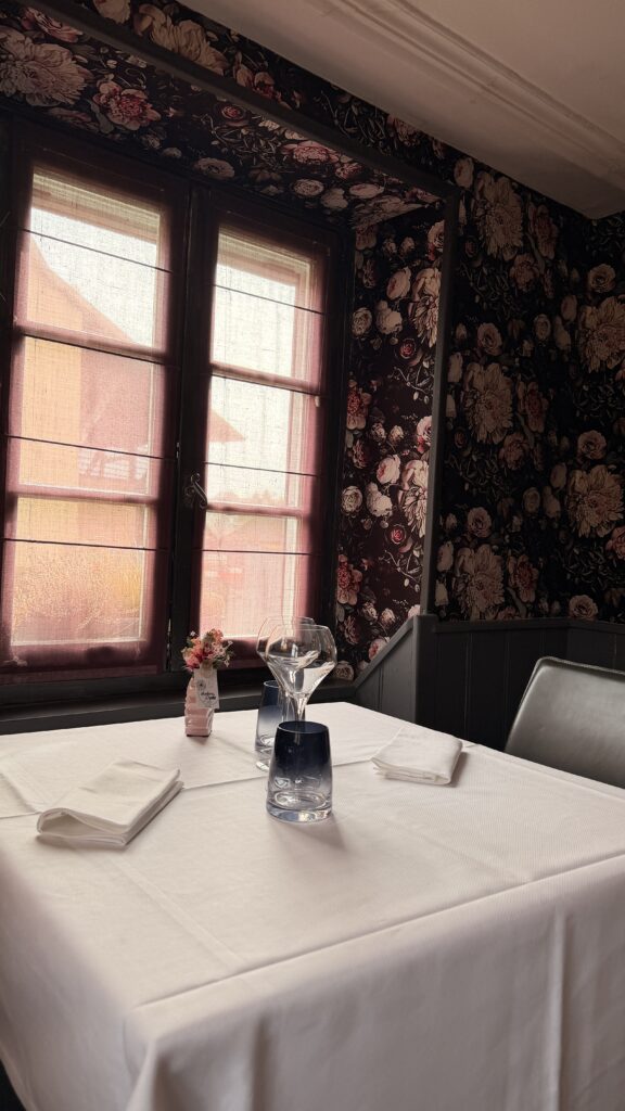 C’est mon amie Clara qui m’a emmenée à Zimmersheim pour découvrir une adresse qui gagne à être connue : Chez Colette. Tenu par le Chef Huan, l’établissement nous plonge immédiatement dans une atmosphère coquette et intemporelle : nappes blanches, banquettes en cuir et photos en noir et blanc..